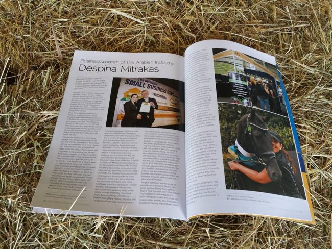 Despina Mitrakas has been featured in this months edition of the Arabian Horse News (December 15 – February 16) as a business woman of the Arabian Horse Industry. Thank you to the Arabian Horse News and to Nicola Kelly who wrote the article on Despina. Click here to read the full article as it appears…