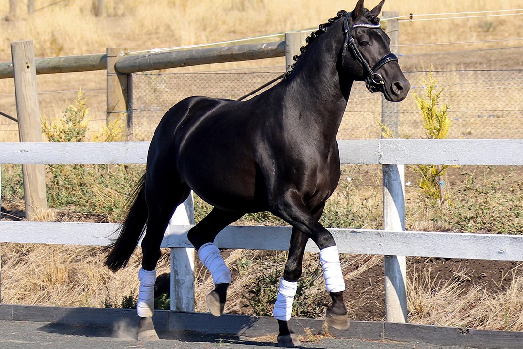 Mavro is a superb example of the modern small performance horse with three sensational gaits and an extraordinarily quiet temperament. He is of international comparable quality with beautiful uphill conformation, a powerful walk with active reaching hind leg and elastic engaged canter with lots of jump.