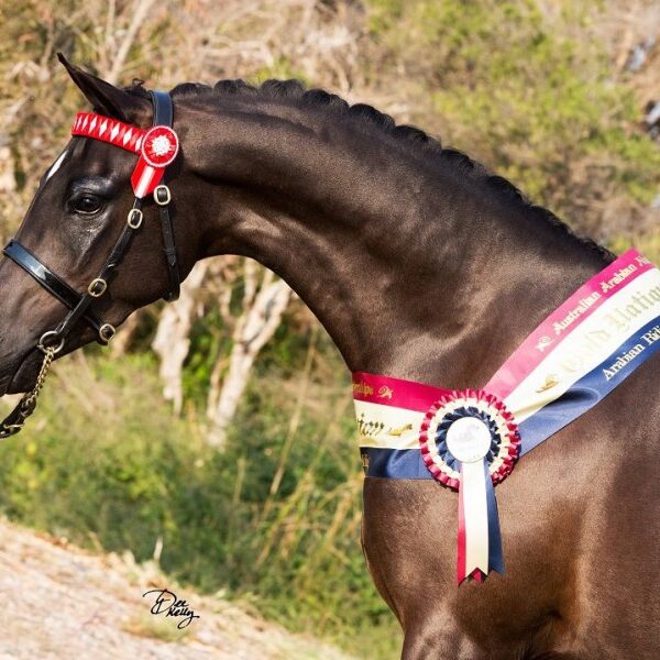 His foals are exceeding our expectations with trainability, temperament and movement. Out of a small amount of foals he has already bred, Elite and Premium foals, the Highest Scoring ACE Performance Pony Colt TWICE, 2019 Australian Arabian Champion Arabian Riding Pony Junior Gelding and multiple Victorian Riding Pony HOTY Champions. His first foal is under saddle and qualified and was accepted into D&JWTS after two competitions.
